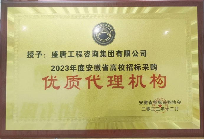2023年12月,盛唐集团荣获2023年度安徽省高校招标采购优质代理机构